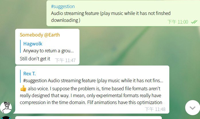 RexTW@tg says to Telegram 討論區
