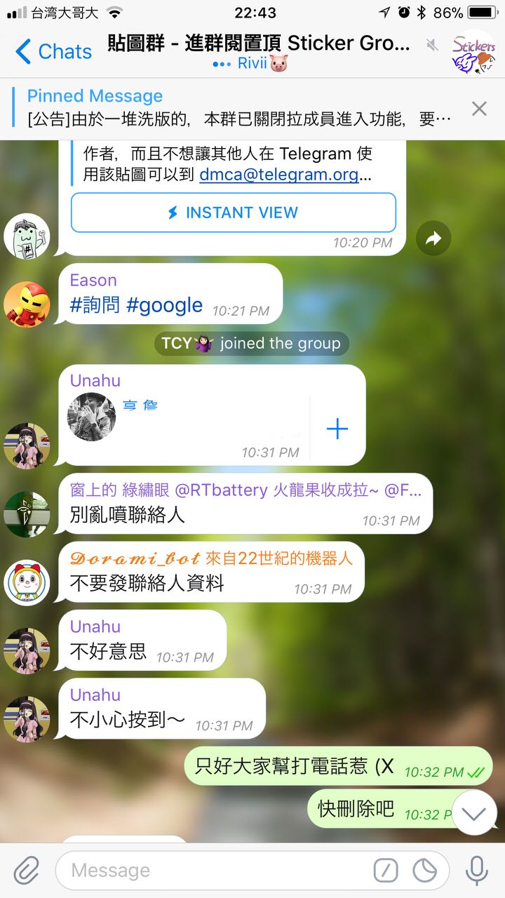 腹黒い茶 says to 貼圖群 - 進群閱置頂 Sticker Group Taiwan