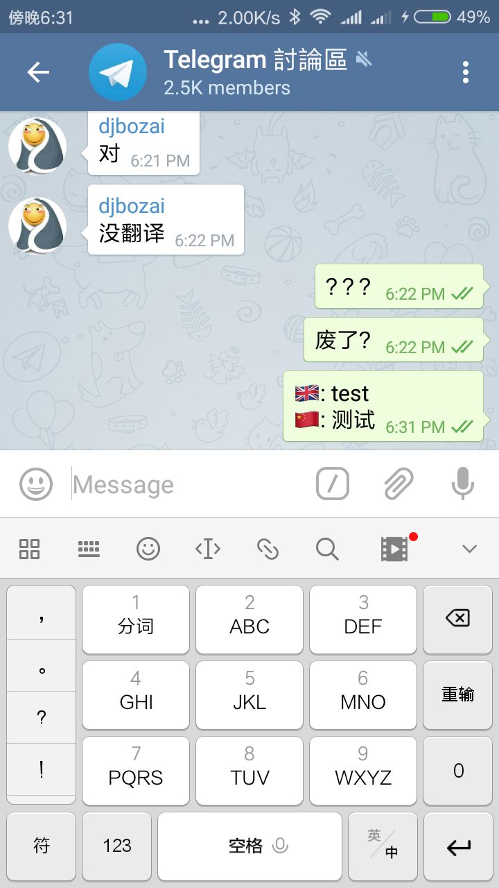 hhhhh kkkkk says to Telegram 討論區